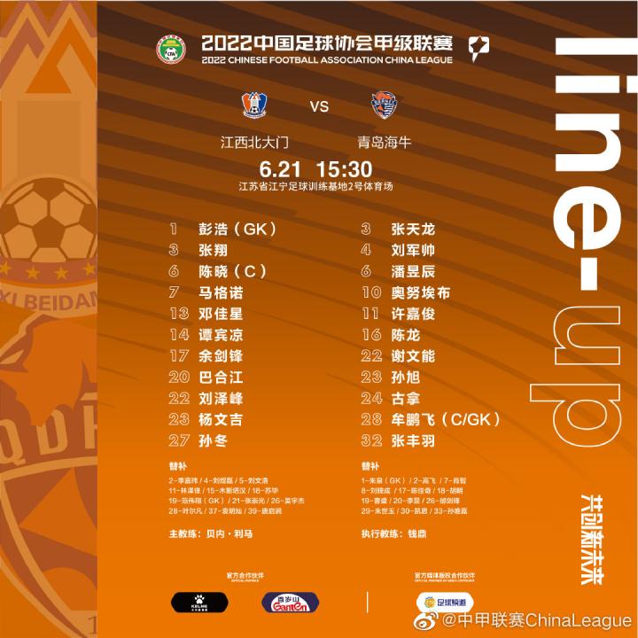 江西北大门新赛季进行了大调整,仿佛换了一支队似的。主帅贝利·利马安排外援马格诺领衔首发;陈晓担任场上队长,门将是彭浩;其他位置还有张翔、谭宾凉、巴合江、孙冬等球员。袁明灿、刘文浩等球员现身替补席。