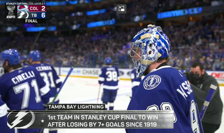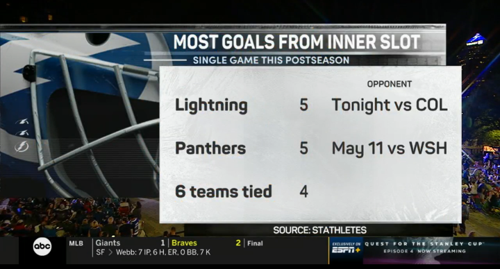 闪电成为历史第一支在连续6场季后赛主场比赛中都没有让对手在人数相等的情况下取得进球的球队。