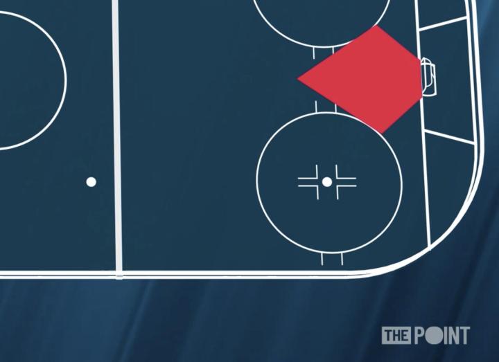 本赛季季后赛单场比赛在内槽区(球门前的扇形区域)的进球数排行——