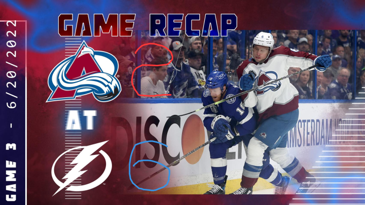 北京时间2022年6月21号上午8时,2021-2022赛季NHL总决赛GAME 3的比赛在雪崩和闪电之间进行。本场比赛移师闪电主场、佛罗里达坦帕湾的Amalie Arena。首节,尼楚什金进球因越位被吹,兰德斯科格多打少助雪崩首开纪录,闪电由奇雷利和帕拉特在不到2分钟的时间内连进两球将比分反超;次节,尼克拉斯·保罗抓住对方失误打进一球,兰德斯科格多打少梅开二度将分差缩小,闪电没有丧失进攻节奏,斯塔姆科斯转身射门得分,马鲁恩销魂反手建功,科里·佩里多打少进球创造历史;末节,雪崩尽管攻势迭起,但还是无力进球。全场比赛结束,闪电6人进球,在主场6:2大胜雪崩,将大比分扳成1:2。