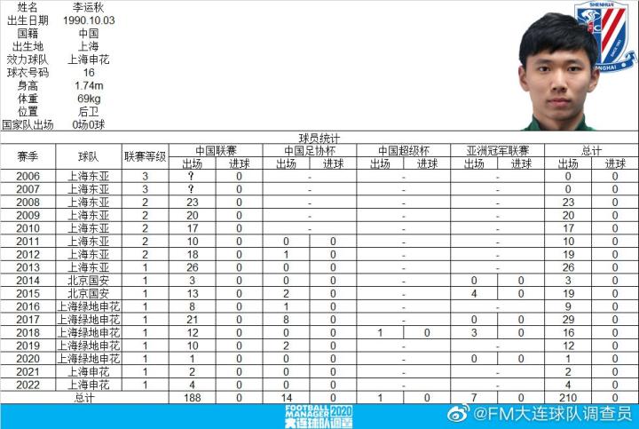 李运秋迎顶级联赛百场里程碑,成第15位达此成就90年龄段球员王竟不土 @懂球帝2022-06-28 12:33据FM中国区资料官方助理调查员冯世超的统计,上海申花球员李运秋达成中国顶级联赛百场里程碑。据统计,在本轮上海申花2-1击败广州队后,李运秋在中国顶级联赛出场数来到100场,成为第474位达成此项成就的球员,同时也是90年龄段国内第15位达成成就的球员。图片来自@FM大连球队调查员生涯至今,李运秋曾先后效力过上海海港、北京国安和上海申花,目前代表申花出战过72场比赛,贡献1次助攻。展开更多