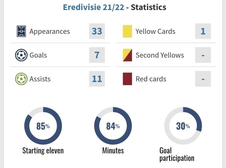 本赛季他代表海伦芬和埃因霍温一共出场33次荷甲联赛共打入7粒进球和11次助攻,此外在6场荷兰杯的比赛中他也奉献了3球3助攻的数据。