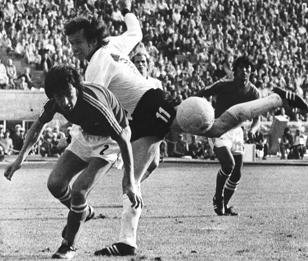 1954年的“伯尔尼奇迹”离我们有些遥远,让我们把目光放到离我们较近的年代吧。也许你听说过贝肯鲍尔、布雷特纳、赫内斯与盖德·穆勒等传奇球星的名字,这些赫赫有名的球员都是1974年世界杯德国队的主力成员。但是你可能不知道就在这支国家队里,有一位球员曾经在1972-1975年的三个德甲赛季当中,在97场比赛里打入85球,2次成为德甲金靴。并且他是唯一一位获得过欧洲三大杯金靴的球员(1972-73、1974-75赛季欧洲联盟杯金靴、1973-74赛季欧洲优胜者杯金靴、1975-76赛季欧冠金靴)。这个人的名字是:海因克斯。没错,他就是那个在2012-13赛季带领拜仁慕尼黑成为三冠王的“老人家”。