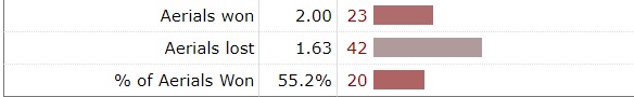 但是,矮个子后卫始终无法回避的一个重要问题,便是对头球的争夺。如果面对高空轰炸,失去高空保护的后防线很容易被对手抓住漏洞,加以利用,那么,马丁内斯的空战表现究竟如何?