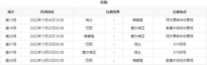 G组赛程: