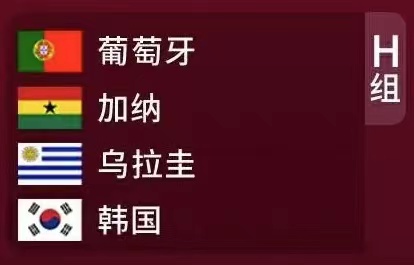 H组中,葡萄牙队与乌拉圭队的实力处于第一档,韩国队实力仅优于目前世界排名第60位的加纳队,而这四支球队在世界杯中渊源颇深。葡萄牙与加纳队是2014年世界杯的小组赛对手,当时葡萄牙队2-1战胜对手,但两支球队都无缘淘汰赛;而乌拉圭队曾在上一届世界杯的1/8决赛中击败葡萄牙晋级;而在2010年世界杯中,乌拉圭队在淘汰赛先后击败韩国队以及加纳队晋级四强,在乌拉圭对阵加纳队的比赛中,苏亚雷斯在门线上用手拍出加纳队必进球的场面也成为了世界杯的经典时刻。