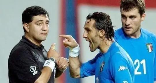 图:韩国与意大利的比赛中,意大利球员怒斥当值主裁判
