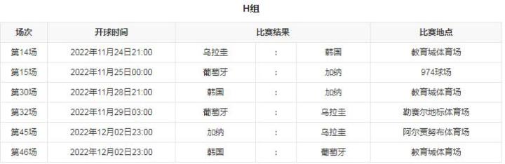 H组赛程
