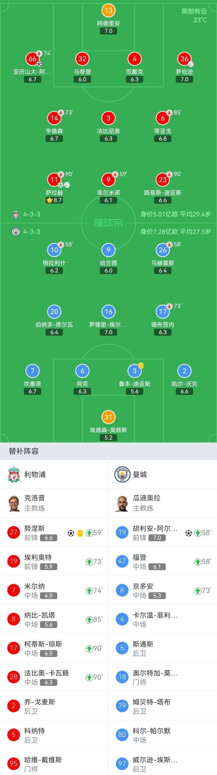 未出场替补:18-奥尔特加-莫雷诺、4-卡尔温-菲利普斯、5-斯通斯、79-姆贝特-塔布、80-科尔-帕尔默、97-威尔逊-埃斯布兰德