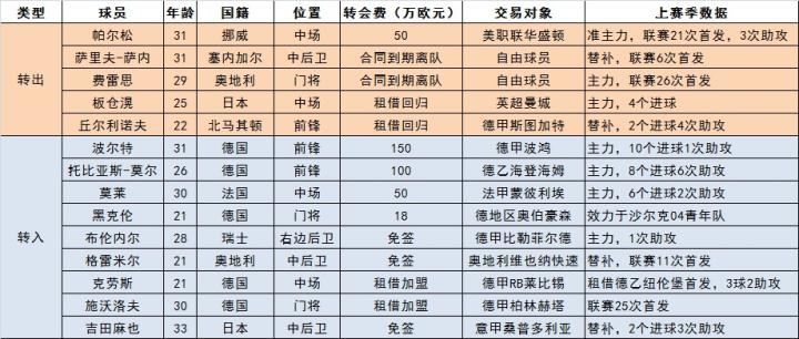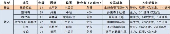 球员调整:不莱梅在这个夏天并没有大幅度地调整球队上赛季的主力阵容,大部分主力球员都得以留队,引援方面也以年轻球员为主。目前来看,不莱梅新赛季的德甲征程依然会大概率沿用上赛季的主力框架。