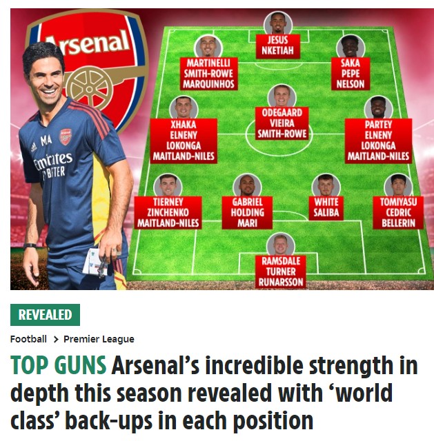 《太阳报》表示随着今夏的转会引援,阿森纳现在在阵容厚度方面极大补强,《太阳报》列出了阿森纳新赛季的阵容厚度。