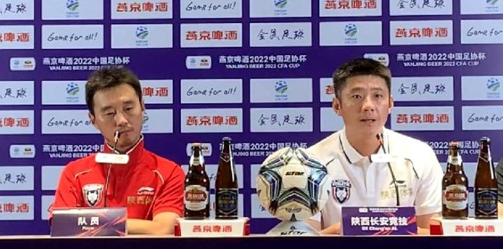 北京时间8月20日,2022中国足协杯第一轮陕西长安竞技vs广西平果哈嘹的赛前新闻发布会在南京召开。陕西长安竞技助理教练迟景天携球员杨昊出席。