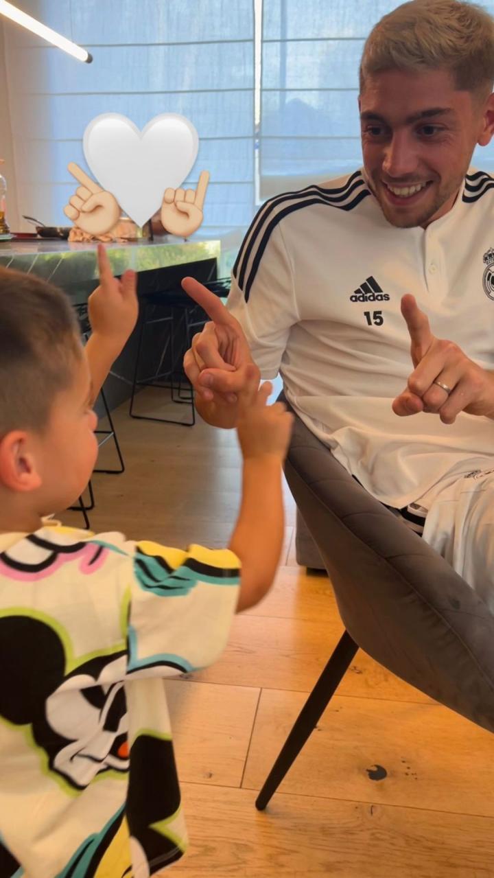 可爱,巴尔韦德晒与儿子一同比两根手指庆祝动作照片ETChalmers @懂球帝2022-09-12 10:59在对阵马略卡的比赛中斩获进球后,皇马中场巴尔韦德在社交媒体晒出他与儿子一同比出两根手指的庆祝照片。此前,巴尔韦德曾在进球后做出比两根手指的庆祝动作,这是模仿自己儿子的动作。在对阵马略卡进球后,巴尔韦德再次在场上做出同样的庆祝动作,而且赛后在个人社交媒体上,巴尔韦德还晒出了他与儿子一同比出两根手指的庆祝照片。展开更多