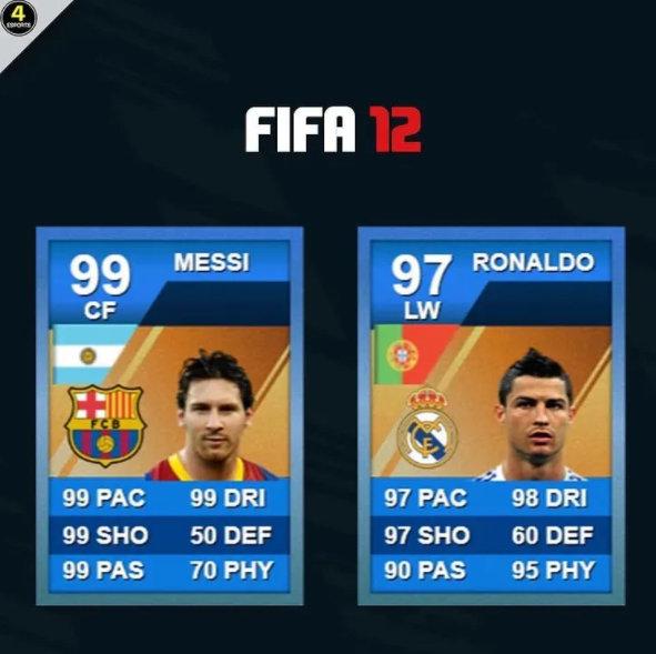 梅西将保持FIFA 13中94的评分,在射门和传球上略有提升,但带球略有下降。正是在这一点上,C罗开始了与他的“金球奖之战。