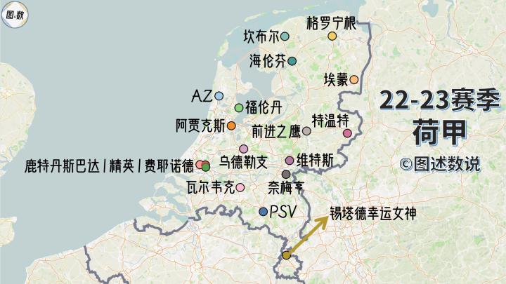 荷甲最著名的球队就是首都阿姆斯特丹的阿贾克斯,他们共获得过4次欧冠,仅次于皇马、米兰、拜仁、利物浦和巴萨。不过值得注意的是,阿贾克斯其实并不在阿姆斯特丹主城区,而是在其飞地——东南区。
