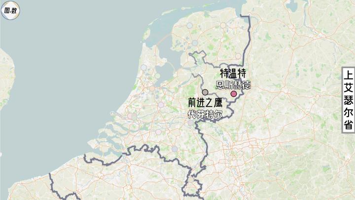 德伦特省南侧是上艾瑟尔省,它因处在艾瑟尔河的上游地区而得名,最终是注入艾瑟尔湖。上艾尔瑟省的最东部是特温特地区,这是一个文化分区,并不是一个行政区划(就像安徽省的江淮地区),其中心城市恩斯赫德拥有一支荷甲球队——特温特足球俱乐部。