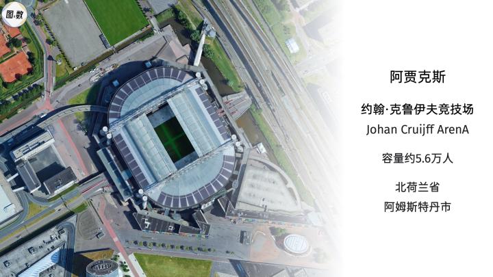 阿贾克斯的主场是以荷兰传奇球员兼功勋教练为名的约翰·克鲁伊夫竞技场,它同时也是荷兰国家队的主场,曾在2000、2020两届欧洲杯承办过多场比赛。