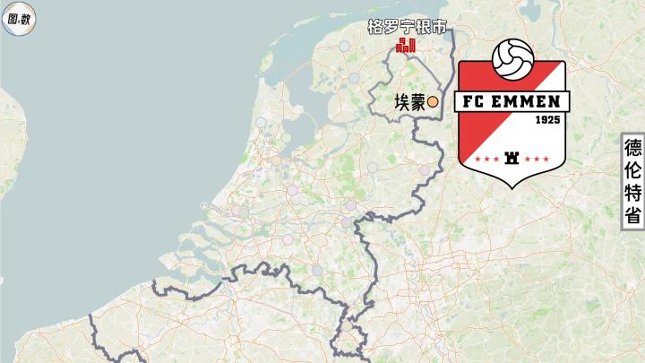 格罗宁根省南方是德伦特省,作为荷兰经济状况最差的地区,他们2019年的人均GDP是3.1万欧元,仅为北荷兰省的一半。德伦特省第一大城市是埃蒙,与之同名的埃蒙足球俱乐部长期征战在次级联赛,他们是本赛季的升班马,也是位置最靠东的荷甲球队。