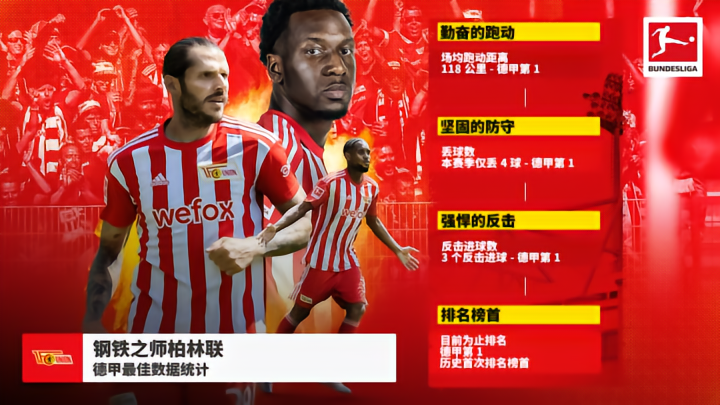 德甲本赛季7轮战罢,目前柏林联合在联赛中保持不败,5胜2平积17分暂列第一。领先第二名多特蒙德2分,领先拜仁高达5分。作为德甲联赛唯一一支不败的球队,到底为何能够傲然群雄?能够将德甲双雄压在身下?我们来看一看柏林联合是如何做到的。