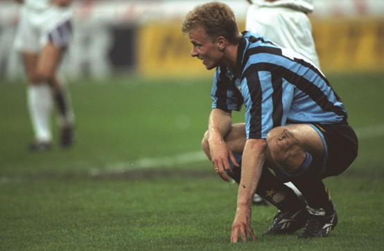而那时的国际米兰自三驾马车解体后,在漫长的重建里挣扎。由于沉重的债务负担,球队老板佩莱格里尼的经营也力不从心。不能持续大手笔的投入让国米在当时小世界杯时的意甲难有竞争力。同时队内的混乱也在加重危机。93/94赛季,后防线的中坚贝尔戈米与门将曾加之间相互不满,新援博格坎普与原头号射手索萨因点球主罚权归属也积怨很深。当赛季,内外交困的国米虽然夺得联盟杯,但国内联赛险些跌入降级区,以第13名草草结束了当赛季。