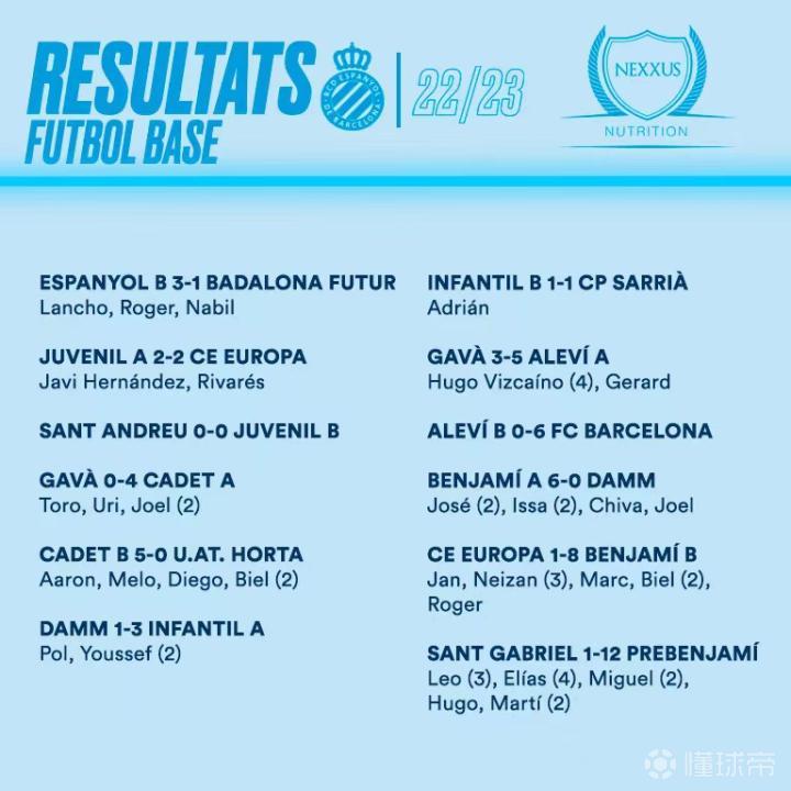 西班牙人青训梯队战报:青年A队(Juvenil ...