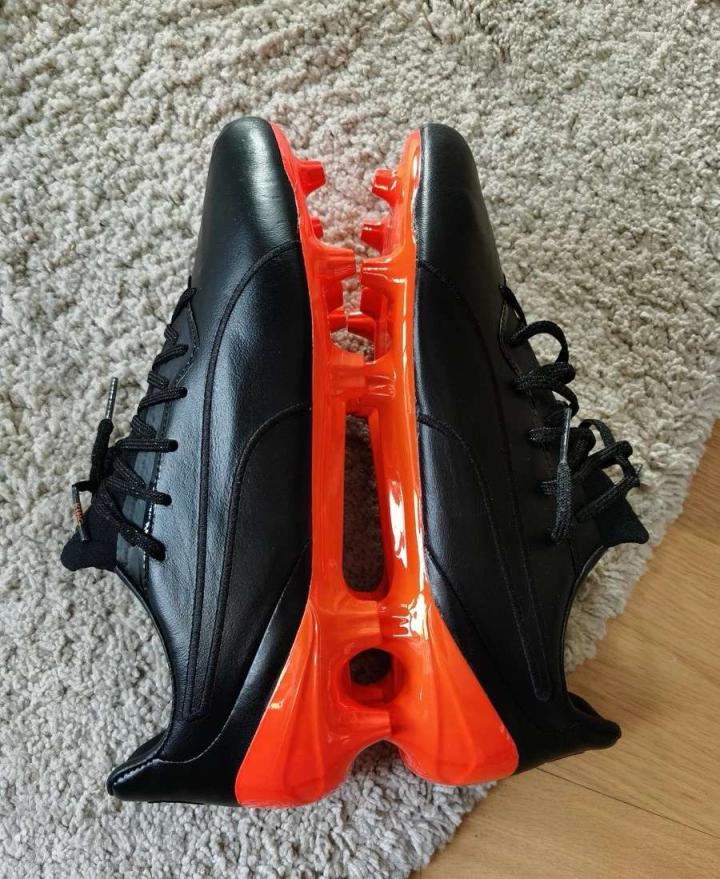 彪马的三个系列future,ultra,还有king是目前主力产品 future主打掌控,目前我有future z 1.2 FG和1.3 MG,作为踢中场的我来说,future z系列绝对是今年包裹性最佳球鞋,尤其是1.3,真的感觉是完全贴合脚型,而且不需要暖鞋,即穿即用。future的触感很接近日产袋鼠皮,不过1.3相较于1.2鞋头更糯更软一些,现在的实战主力 ultra主打速度,目前我有ultra 1.1 FG和1.4 MG两个版本。1.1应该是我的战靴里最轻的,FG轻量化大底做的也很不错。ultra1.1采用当时最新的针织技术,整体鞋楦比较宽,不太适合瘦脚。1.4加入了碳纤维材质,中段定型做的比较窄,一开始上脚会有轻微嘞脚的感觉。两款鞋需要1-2场暖鞋,暖开后也是可以完全贴合脚型,穿着非常舒服,实战利器。 king主打袋鼠皮,之前一黑一白两双king platinum FG,但是彪马袋鼠皮做的普遍大半码,黑橘色已经直接出了。留下了小半码的白色,新鞋状态颜值非常在线,但是踢了15+以后,整体皮子有些塌陷,内置龙骨的作用没有体现出来,定型这块彪马做的比较一般。袋鼠皮填充没有日产厚实,所以发力比较透,除了爱开胶,其他没什么毛病,21年主力战靴之一