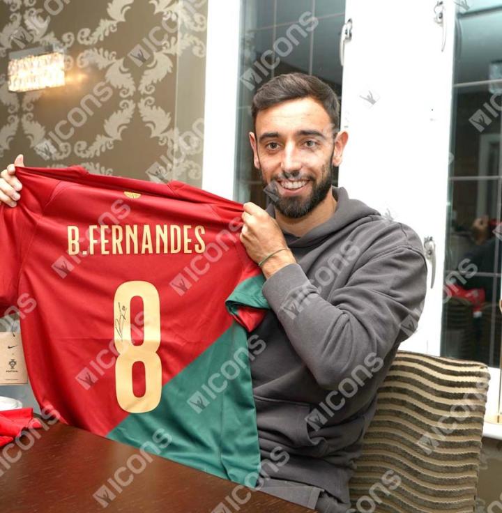 ICONS官方上架B费国家队亲签装裱球衣 张指导聊收藏 张指导聊收藏2022-10-24 16:55近日ICONS官方上架了葡萄牙、曼联中场球星B费的国家队签名装裱球衣。2022年10月14日,B费在曼彻斯特的私人签约会上亲自签名了这件葡萄牙球衣。这件球衣附有国际足联世界杯官方认证证书,可以作为签名100%真品的证明。目前官方给出的售价为849.99英镑。(丁丁)来源:ICONS展开更多