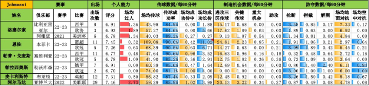 (图)洛塞尔索与其他阿根廷中场数据对比图