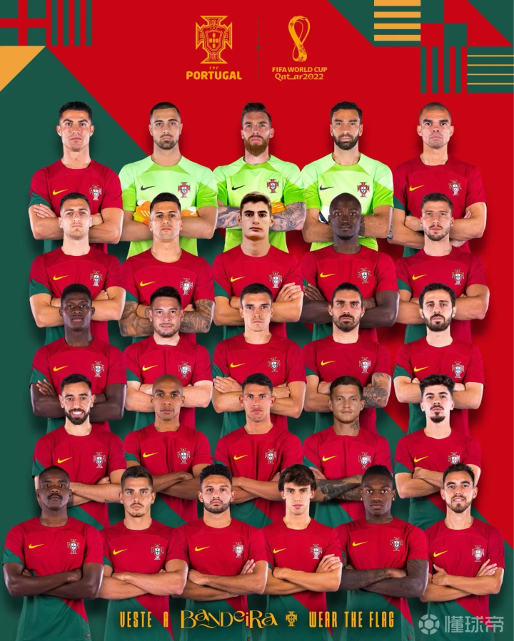 相比于梅西所在的阿根廷,这一届由C罗领衔的葡萄牙在阵容方面看似更为强大,队内球星云集。前锋线上,尽管本赛季的C罗的竞技状态在俱乐部方面出现严重下滑,但是在国家队方面,C罗依旧是雷打不动的核心主力,再加上若昂•菲利克斯、拉斐尔•莱奥等新黄金一代的逐渐成型,葡萄牙的锋线还是令人不容小觑。中场方面,有B席、B费、鲁本•内维斯等人坐镇,前腰和后腰两个位置均无短板。而后卫方面,老将佩佩领衔鲁本•迪亚斯、坎塞洛等一批后防顶尖球员,也保障了后防线上的稳固。葡萄牙唯有门将位置稍微逊色一些,但相信后防线的出色表现,势必会减小门将的压力。尽管葡萄牙阵容确实不错,但个人并不太看好他们能走太远。一方面是C罗年龄的增大以及本赛季状态的下滑,可能很难再成为扛着球队前行的carry人物了。另外面对同组劲旅的乌拉圭,稍不留神葡萄牙可能就会在淘汰赛首轮就遭遇巴西。即便他们能够顺利以小组第一出线并通过1/8淘汰赛,接下来可能还会面临德国、西班牙、比利时这些强队的考验,道路可谓险阻漫长。