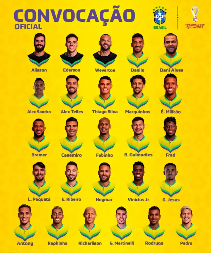 拥有“足球王国”美誉的桑巴军团,是夺得世界杯冠军次数最多的球队,但是自2002年世界杯以后,巴西就逐渐走下神坛。经历了近20年的世界杯无冠真空期,今年的巴西队可谓强势归来。锋线上由当家球星内马尔领衔,维尼修斯、罗德里戈等一批初出茅庐的球星已然成为了各大豪门雷打不动的主力,而热苏斯、拉菲尼亚、里沙利松作为锋线上的中层年龄球员,也不过25岁上下。因此可以说巴西队的锋线不仅人才济济,而且还层次分明、趋于年轻。中场虽相较于锋线稍显逊色,但依旧有卡塞米罗、法比尼奥作为中后场核心。而中前场进攻组织人选的缺失,有可能会逼迫内马尔的锋线位置后撤,像梅西在阿根廷一样,更多的承担中前场的组织衔接作用。后防线上,蒂亚戈•席尔瓦和阿尔维斯老当益壮,马尔基尼奥斯、米利唐等也是在当今足坛后卫线上能占有一席之地的中坚力量。门将不必多说,阿利松和埃德森,英超两大豪门的主力门将,换任何一人上场都能保证门线上的稳固。总结下来,只要巴西能做好从后腰到锋线之间的位置填充,补足中前场的饱和度,巴西队可以说是一支在任何位置都拥有顶级球员的超级强队,朝六星发起冲击不在话下。