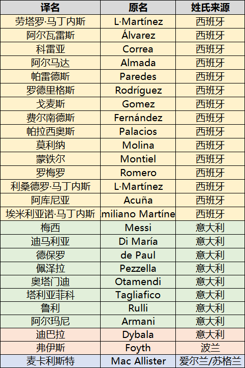 阿根廷26人大名单姓氏来源