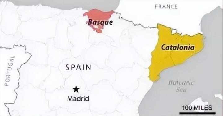 然而,西班牙是多民族国家,境内两大少数民族——加泰罗尼亚地区的加泰罗尼亚人和巴斯克地区的巴斯克人独立情绪非常高。作为卡斯蒂利亚(西班牙主体民族,西班牙语又叫卡斯蒂利亚语)至上的弗朗哥,却用残酷手段,镇压加泰罗尼亚和巴斯克的起义。