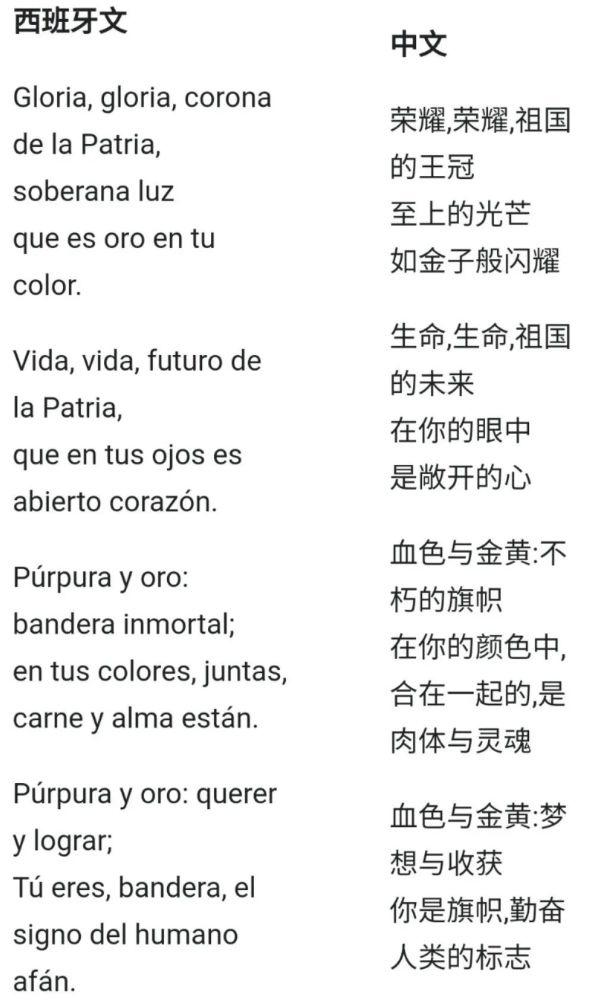 实际上,西班牙国歌《皇家进行曲》(Marcha Real)在历史上是有歌词的,它曾经两次被谱写歌词(分别是1908年-1931年和1939年-1977年),但最终因为政治变故而被取消。