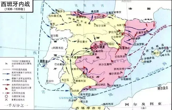 然而,共和国的力量不仅内部陷入混乱,而且低估了敌人的力量。1936年,弗朗哥在德国和意大利的支持下发动叛乱。