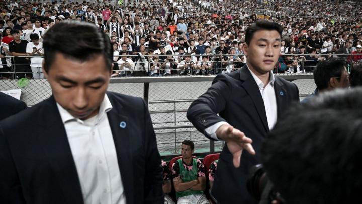 在尤文图斯与马德里竞技的国际冠军杯比赛前,Kwak Ji-Hyuk混到了人群的前列,当众质问C罗为什么没有在韩国的比赛中出场,但C罗还是面无表情的离开了。