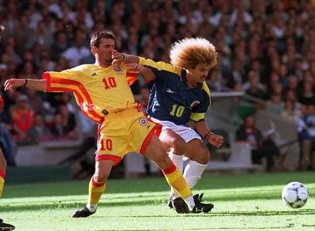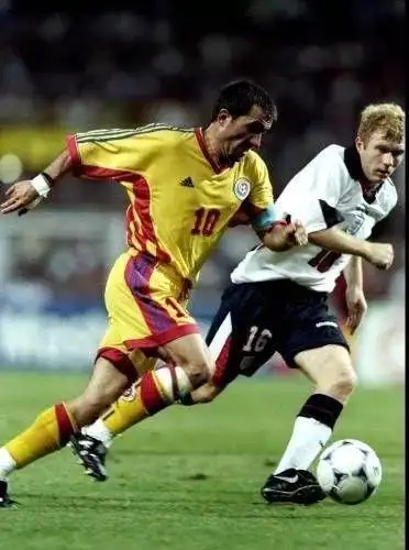 罗马尼亚“黄金一代”,统帅是“中场阴谋家”哈吉,他的出众技术如另一个绰号“喀尔巴阡山的马拉多纳”令人过目不忘,当然还有伊利耶,蒙特亚努,波佩斯库这些球星,你还记得球队全员染头的故事吗?最终他们是小组第一出线。