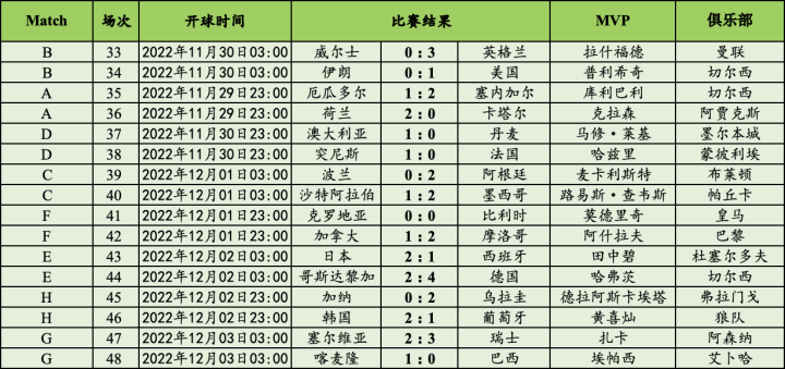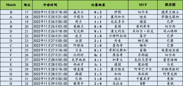 (图)小组赛第二轮完全赛果及单场比赛MVP