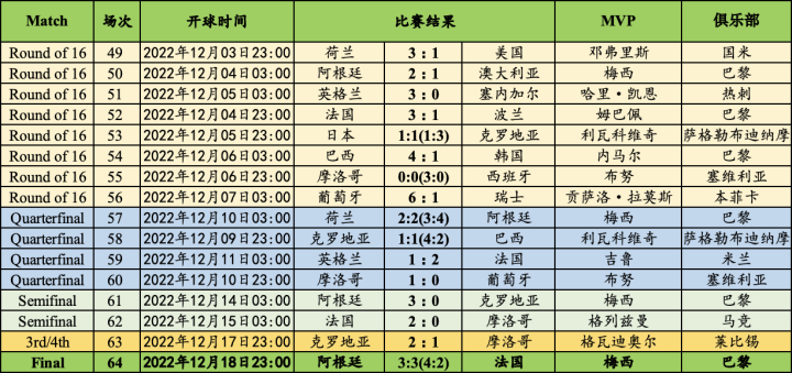 (图)淘汰赛完全赛果及单场比赛MVP