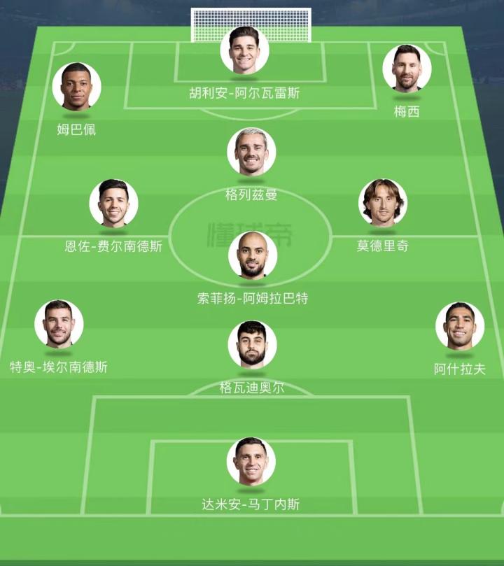 目前官方没有给出最佳阵容的评选,各大媒体、机构的最佳阵容大同小异。这里,给出自评的几乎没有争议的最佳阵容(阿根廷4人、法国3人、克罗地亚2人、摩洛哥2人):