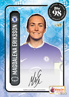 新赛季22/23梅林98的球员名单中,除了欧冠、欧联和欧协球队的球员之外,还有来自于女足欧冠豪门球队的19位女球星们,其实在之前新赛季22/23夏转盒中就开始有女足球员出现了,考虑到明年有2023女足世界杯,所以这类男女足混搭的方式在来年Topps的新产品中应该会比较普遍。