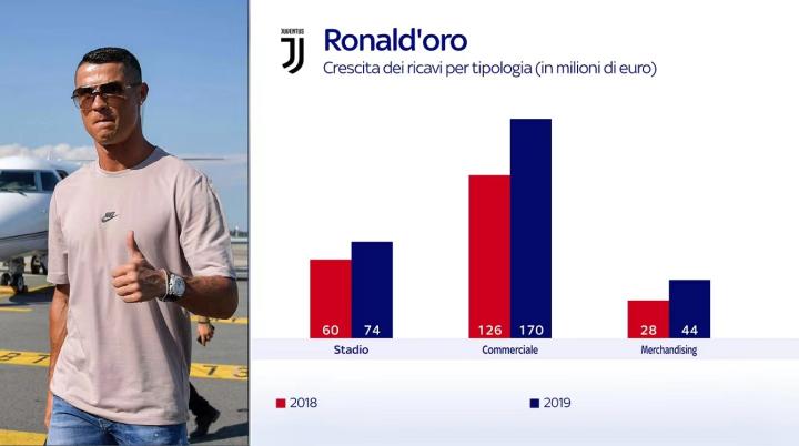 或许在马洛塔经营下的尤文图斯,不会如此疯狂的投入。或许对于当时的尤文图斯,有实力承担这笔巨额投资。当时的尤文图斯也从这笔交易中收获了前所未有的回报,Instagram粉丝数量从不足一千万攀升到五千多万。球衣广告赞助商JEEP的赞助金额从每年1700万增加到4500万,球衣赞助商阿迪达斯从每个赛季的2300万跃升至5100万,2018/19赛季尤文图斯总收入创记录的达到4.64亿欧元。那个夏天,意甲重新回到闪光灯下。