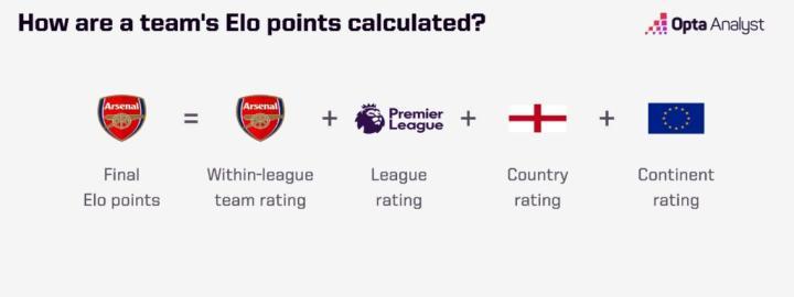 例如,如果曼城对阵瓦斯科·达·伽马,两支球队的Elo分数将与欧洲和南美的Elo分数一起更新。