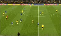 但是这种激进的站位,会造成球队前场和后场出现距离太大的问题。一旦进攻失败,被对方反抢后就地反击,球队就会处于一个门户大开的局面,尤其是在厄兹詹也压上后,多特中后场的抗压能力并没有那么出色。