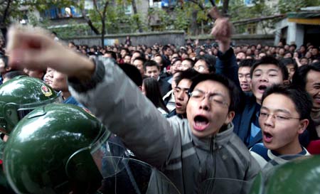 在重庆大田湾体育场,天津队领先的消息传来,重庆球迷开始坐不住了。直到80分钟天津再入一球锁定胜局之时,现场的不满情绪终于爆发。重庆球迷高呼着“力帆解散”、“下课”之类的口号,宣泄着自己的郁闷。