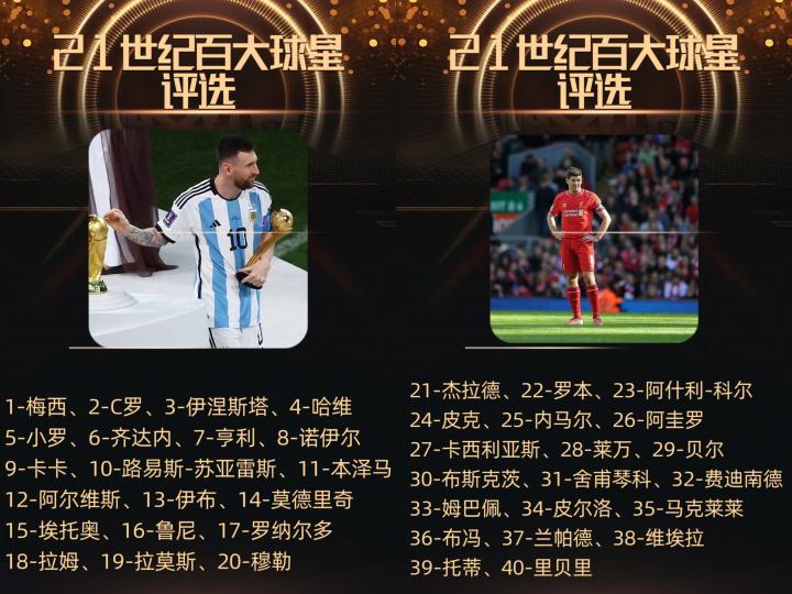21世纪百大球星评选,梅西居首,姆巴佩飙升,新人未入选