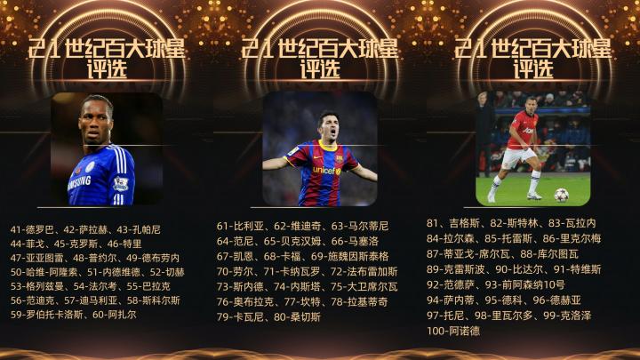 1-40名:梅西第1、C罗第2、伊涅斯塔第3、里贝里第40