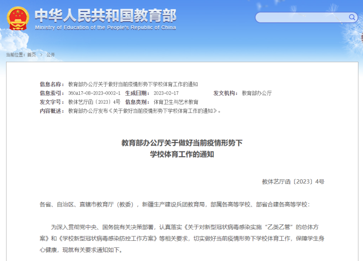 教育部:学校不得随意停止体育教学,要全面开展线下教学活动