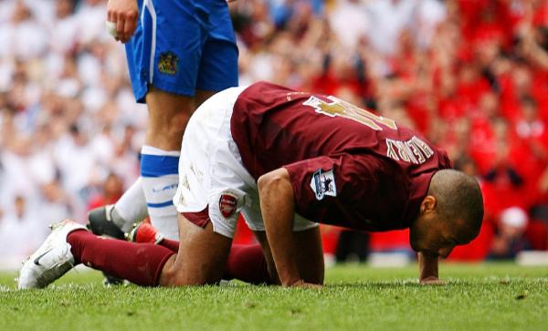 而在赛后庆祝中,莫雷诺更是做出了一个全场球迷都意想不到的决定,他从中圈附近双膝下跪穿越半个球场致谢全场的申花球迷,这一幕,哪怕不是申花球迷,也让人为之动容。作为阿森纳球迷的我依然忍不住想将这张照片与当年亨利大帝亲吻海布里球场的那一幕相联想。