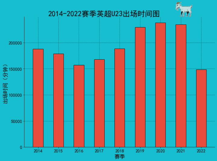 图三:2014赛季至2022赛季中超U23球员出场时间