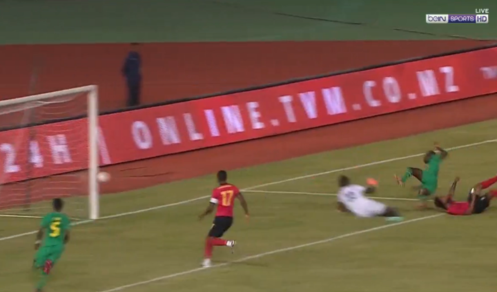 第7分钟,莫桑比克2号马坎德扎禁区外一脚远射,球打高了。